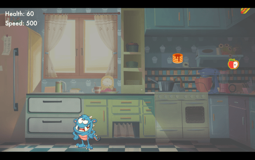 I created this scene as part of a greater educational game concept centered around developing healthy habits in children. In this scene, healthy foods help our avatar fend off the common cold by making it progressively stronger and faster.